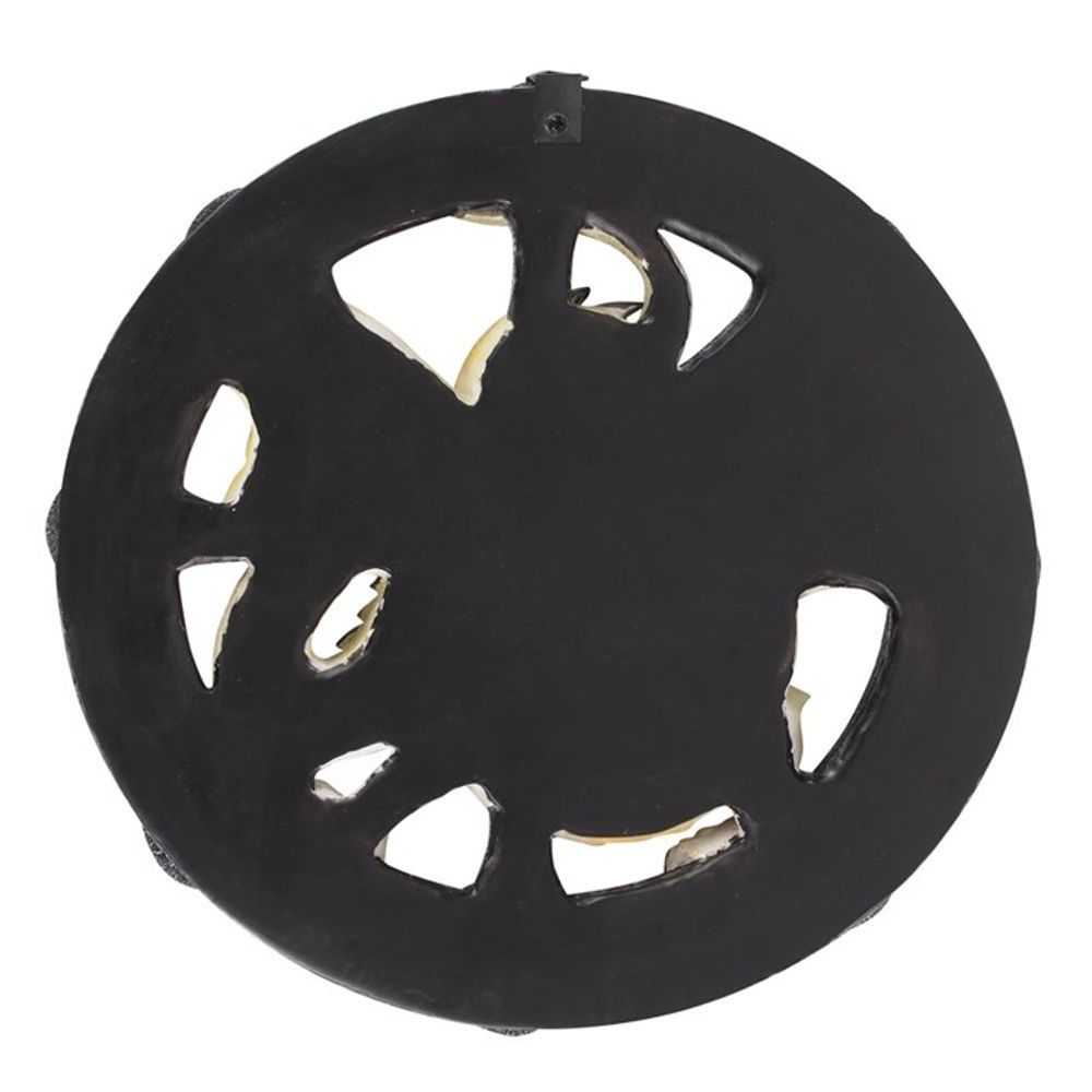 This breath taking piece showcases a mesmerizing serpent-like dragon set against a circle of sabbat symbols. At the top of the wheel, the symbol of the Autumn Equinox, Mabon, is displayed, marking the second of the Pagan harvest festivals.