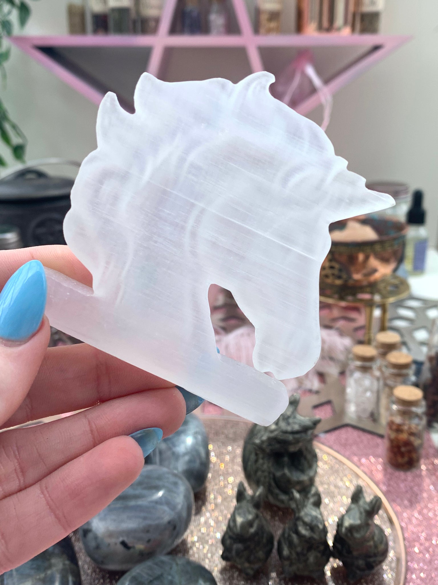 Selenite Unicorn Head