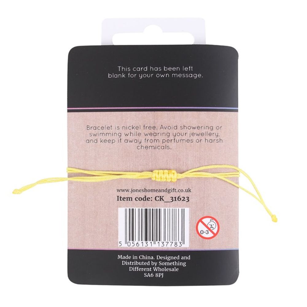 Balance and realign the solar plexus chakra with this yellow string and metal charm bracelet.